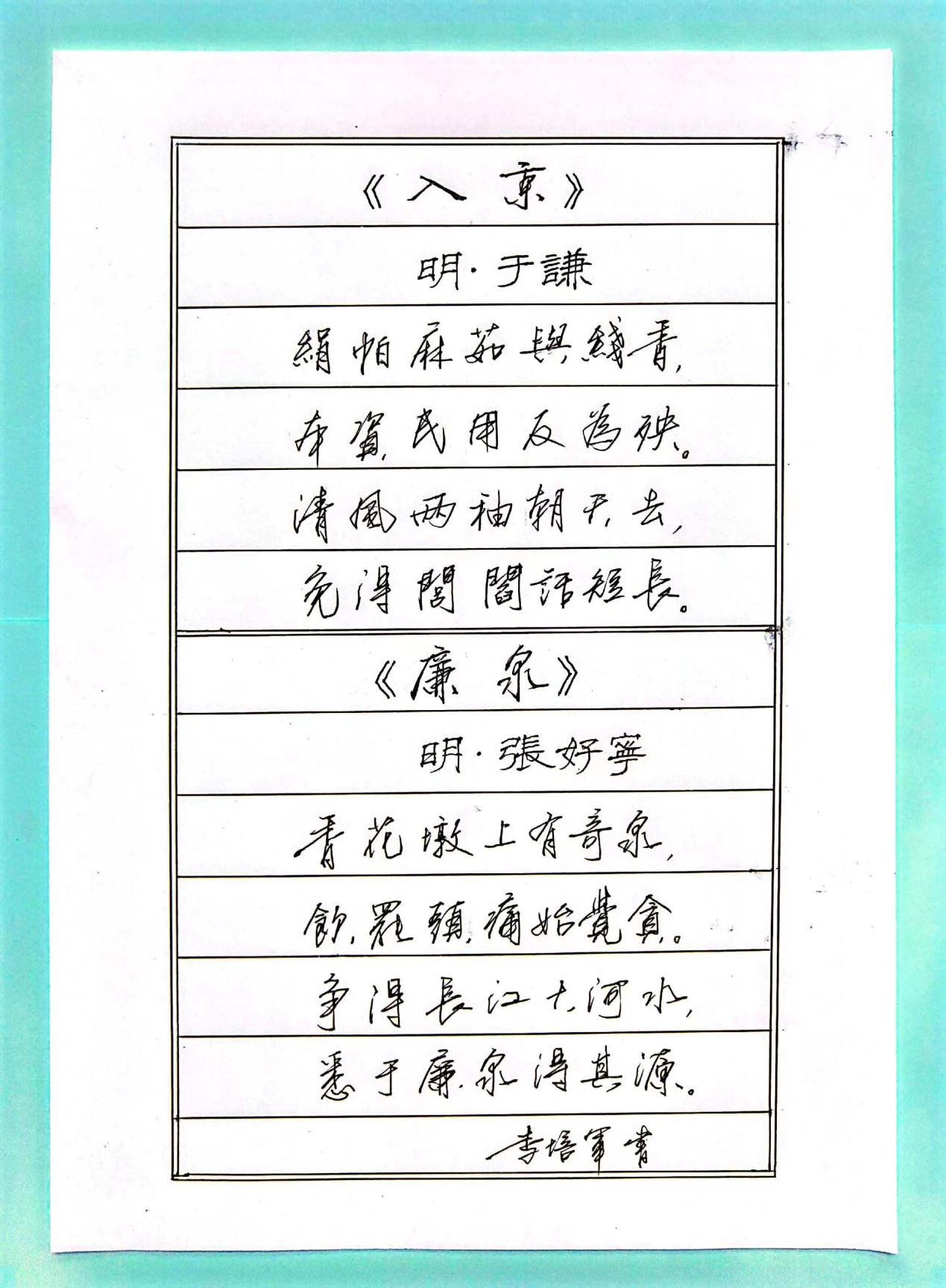 为增强师生的廉洁自律意识,提升校园廉政文化建设内涵,积极营造崇尚廉洁、风清气正的育人环境,地理与环境科学学院党委、纪委举办以“砥砺初心迎盛会,修身自律铸忠诚”为主题的作品征集活动。作品以诗歌、绘画、书法、海报、快板等多种形式,将廉政警示教育与文艺作品充分结合,作品内容多以抒怀言志、歌颂廉政、鞭挞腐败为主,每一件作品都寓意丰富,发人深省,生动地传播了廉洁文化,增强了师生学廉思廉的思想自觉和行动自觉,有利于形成“崇德、尚廉”的良好校园文化氛围。让我们来欣赏他们的作品之书画篇吧!