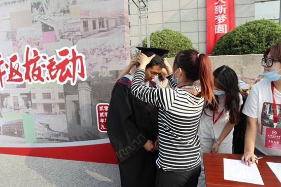 早上8:30,校友们陆续到达大报告厅。签到过后,志愿者们为每位“回家”的校友穿戴好学士服合影留念,并送上了学校精心准备的纪念品。报告厅前,校友们相互寒暄,热情拥抱,时光又仿佛回到了他们的学生时代,记忆中的青春恋曲,岁月镌刻下的真挚情谊,涌上心头。